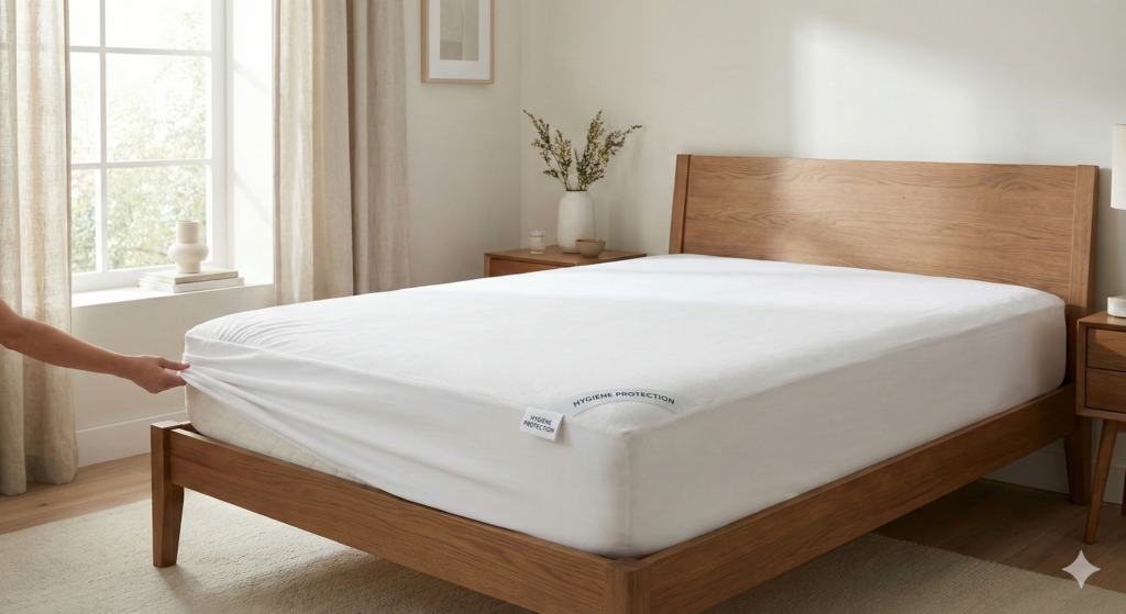 A mattress protector is a thin cover that keeps your mattress clean. It protects against spills, sweat, and dust mites. Some protectors are waterproof. This is important if you have kids or pets.