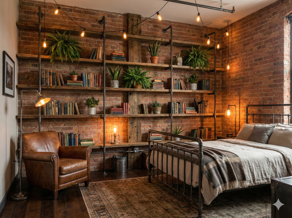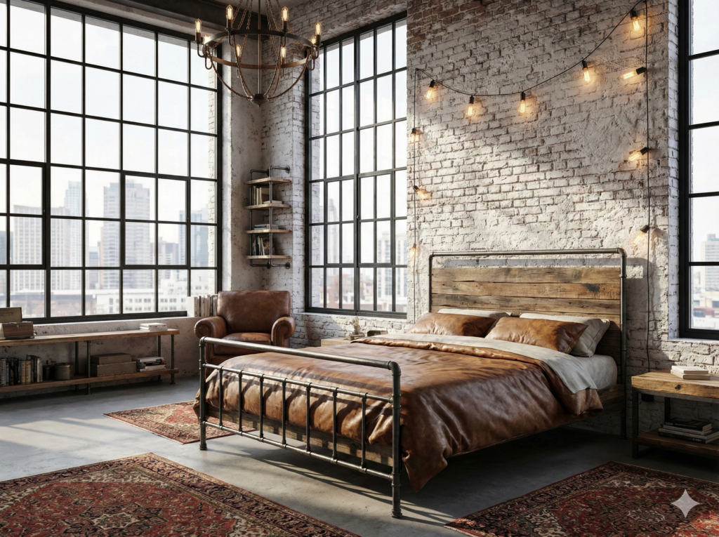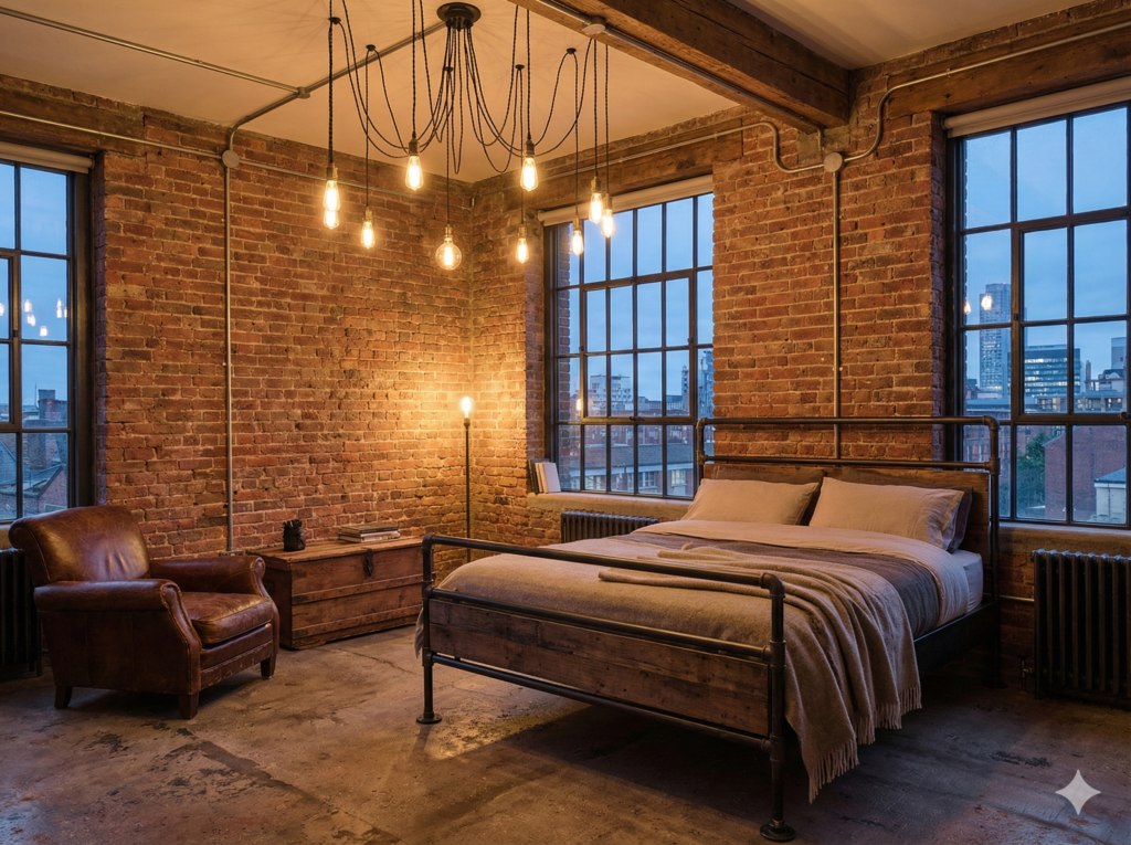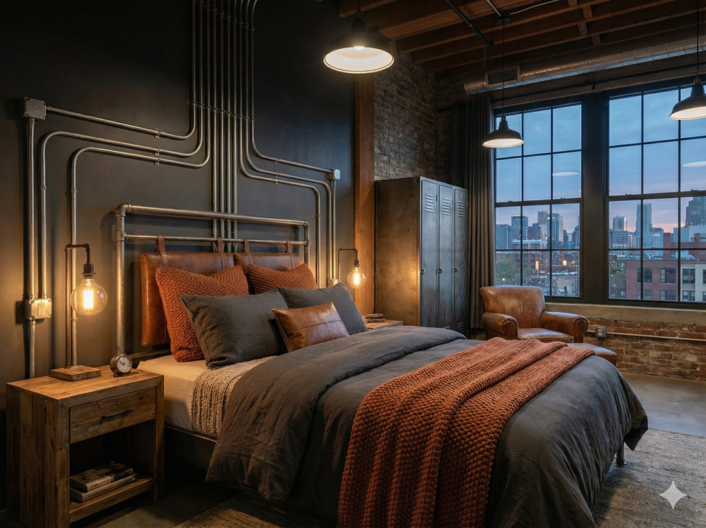 Industrial style comes from old factories and warehouses that got turned into homes. People loved the exposed beams, brick walls, and metal pipes. Now, you can bring that same cool look into any bedroom.