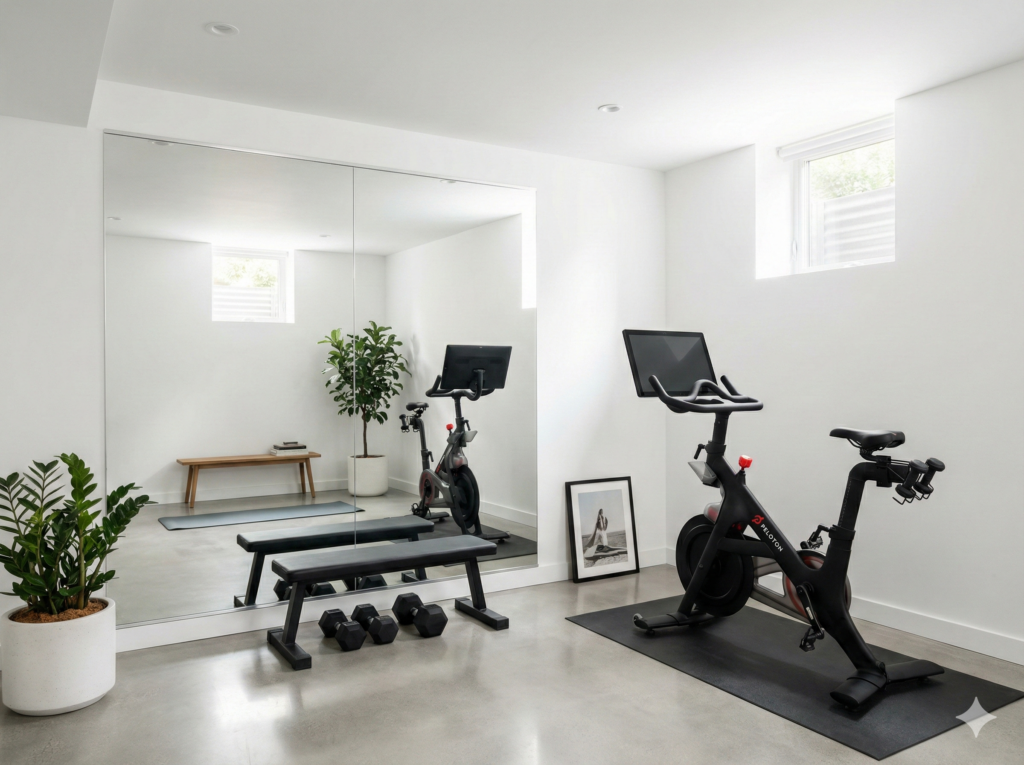 Basements work well because they’re usually private and quiet. Even unfinished basements can become great gyms.