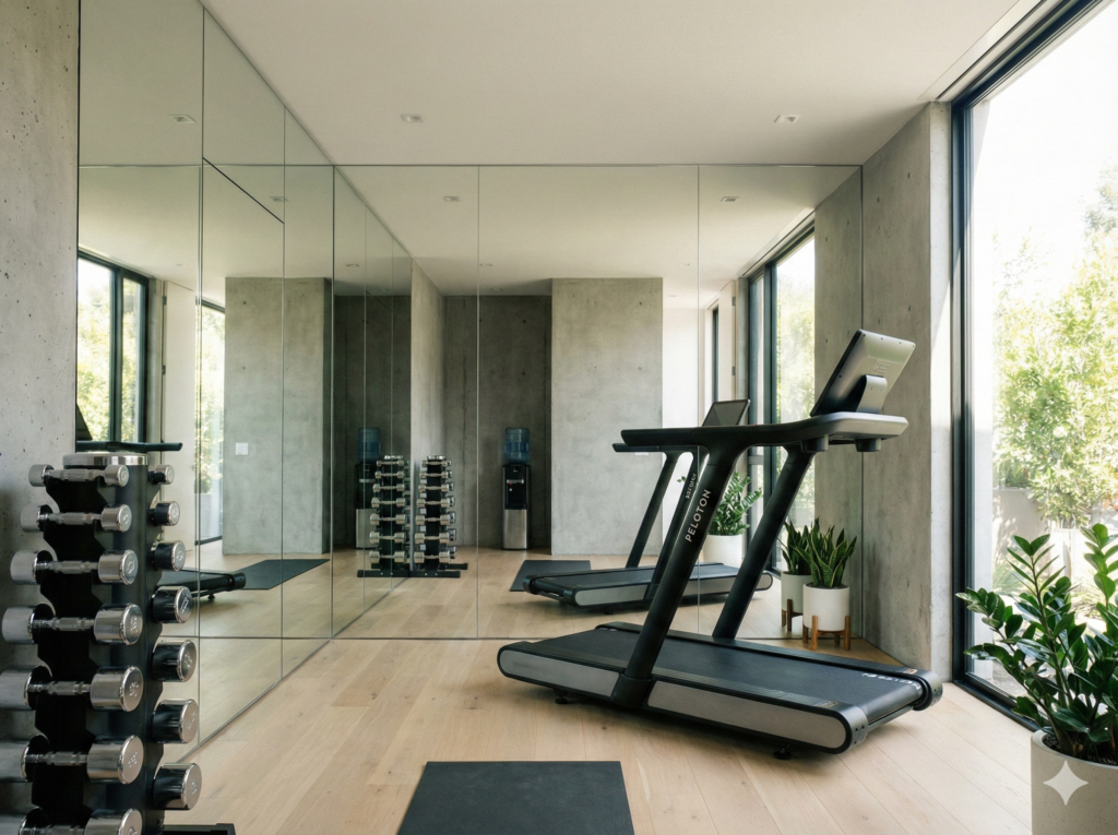 Mirrors are the secret trick that makes gyms look professional. They make small spaces feel twice as big.