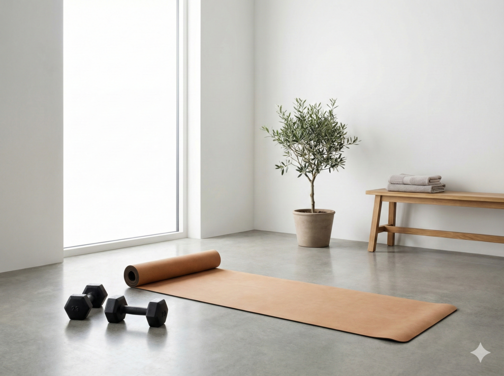 Keep the space flexible. Use folding or rolling equipment that moves easily. This lets you change your workout area based on what you’re doing that day.