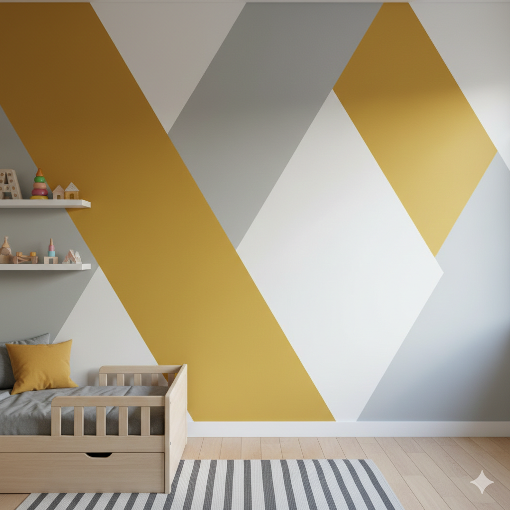 Create fun geometric shapes on your walls. Start with basic shapes like triangles or circles. Paint them in different colors for a modern, playful look. These patterns are perfect for kids’ rooms and creative spaces.