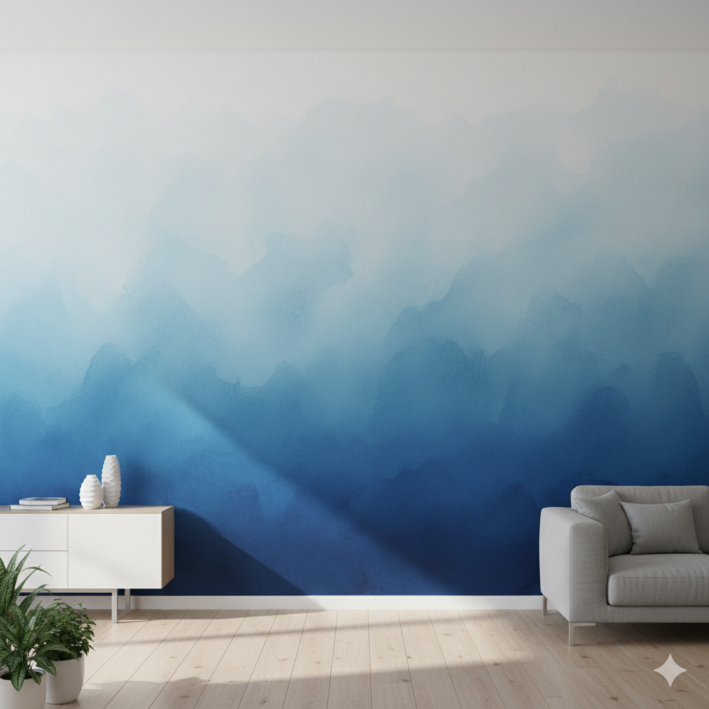 An ombre effect blends two or more shades of the same color from light to dark. Paint the bottom of the wall darker and gradually lighten as you go up. This creates a beautiful, dreamy look on accent walls or staircases. You can do this with paint colors or use peel-and-stick wallpaper.