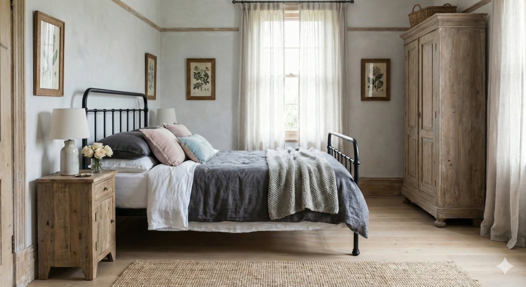 Step 2: Find Your Key Furniture Piece – Hunt for a vintage or distressed bed, dresser, or chest. This becomes your anchor piece. Paint it if needed.