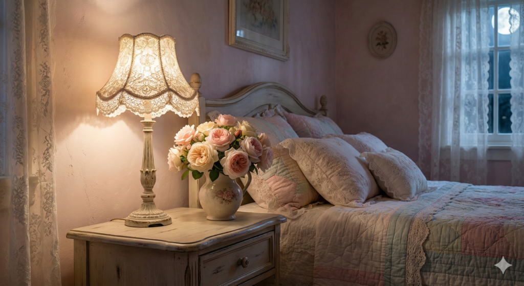 Lighting is super important in a bedroom, and shabby chic gives you lots of options. You can find old lamps at thrift stores, paint them, and update the shades. Crystal chandeliers work beautifully as a statement piece above the bed. Bedside table lamps or wall sconces provide soft, relaxing light.