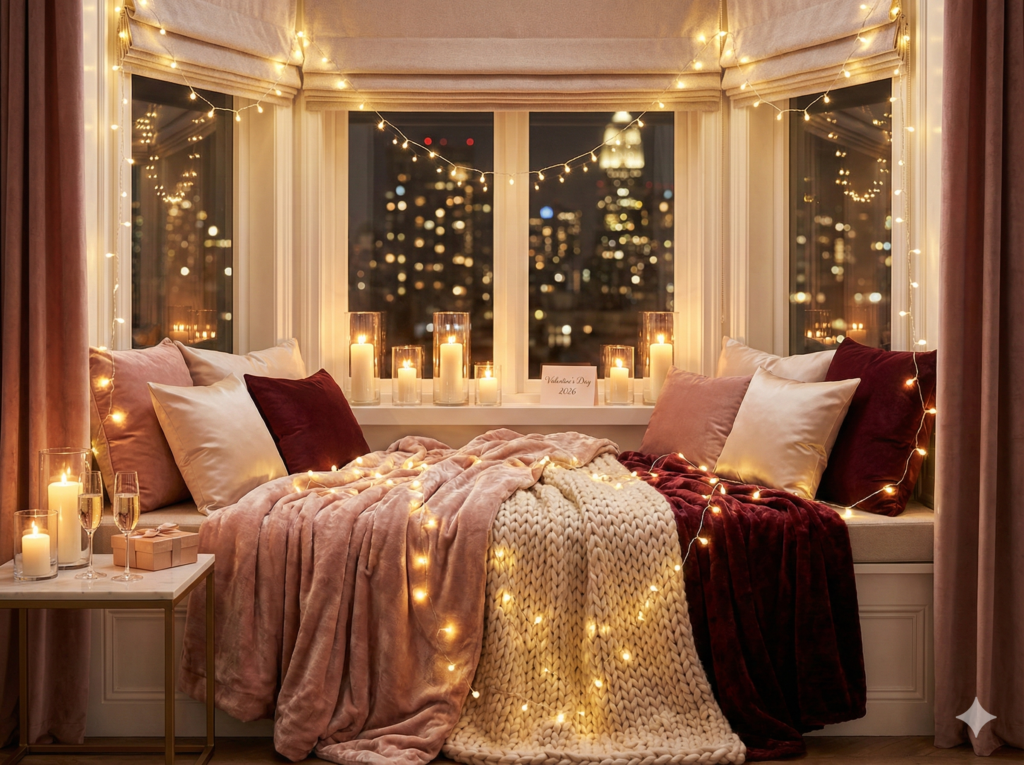 This nook becomes a spot to read love poems, share stories, or just sit close together. Make it extra Valentine’s with pink cushions or a heart-print throw.